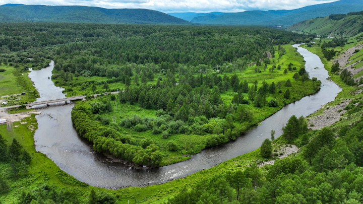 同样是蒙古高原,这边还是青山绿水。