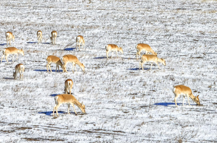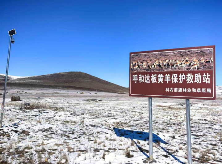 每年冬天黄羊南迁,当地林草部门在黄羊集中出没的地方设置了九个固定投喂点,还组建了三个临时救助站。