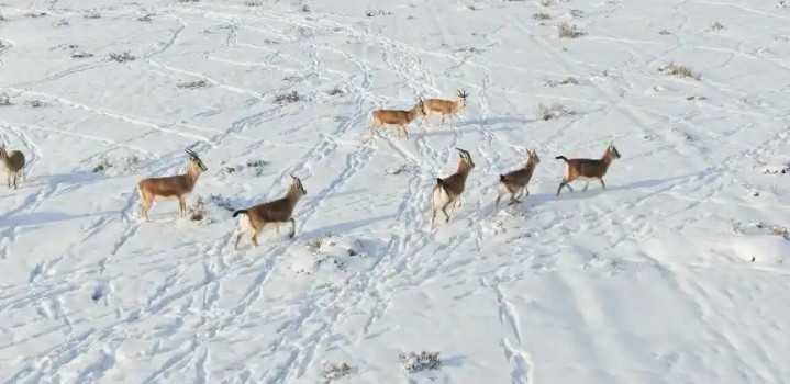 每年冬天,上万只黄羊从蒙古国越境涌入内蒙古,颇有几分"偷渡者"的架势。